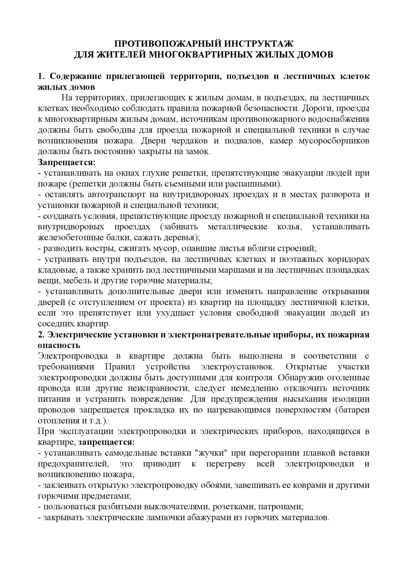 Противопожарная инструкция