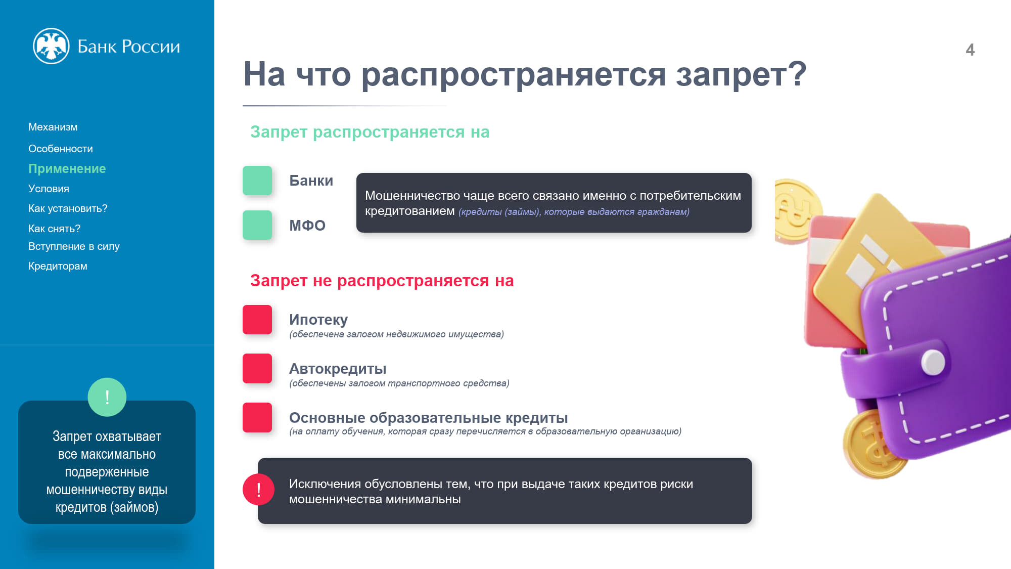 Самозапрет распространяется на потребительские кредиты (займы), в том числе
